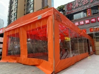 户外火锅餐饮帐篷的定制安装,正成为餐饮行业拓展经营空间、提升顾客体验的创新选择。从定制设计到规范安装,需兼顾功能性、安全性与美观性,为顾客打造灵活舒适的户外用餐环境。定制设计:贴合需求,彰显特色户外火锅帐篷的定制需以场地条件与经营需求为核心。例如,街角火锅店因户外空间不规则,可定制异形帐篷,通过模块化拼接充分利用每一寸空间;若场地平坦开阔,则可选择标准长方形或方形帐篷,长度按需延伸,满足不同规模用餐需求。材质选择上,框架需采用高强度铝合金,抗风能力达8级以上,确保在恶劣天气下稳定;篷布需选用防水、